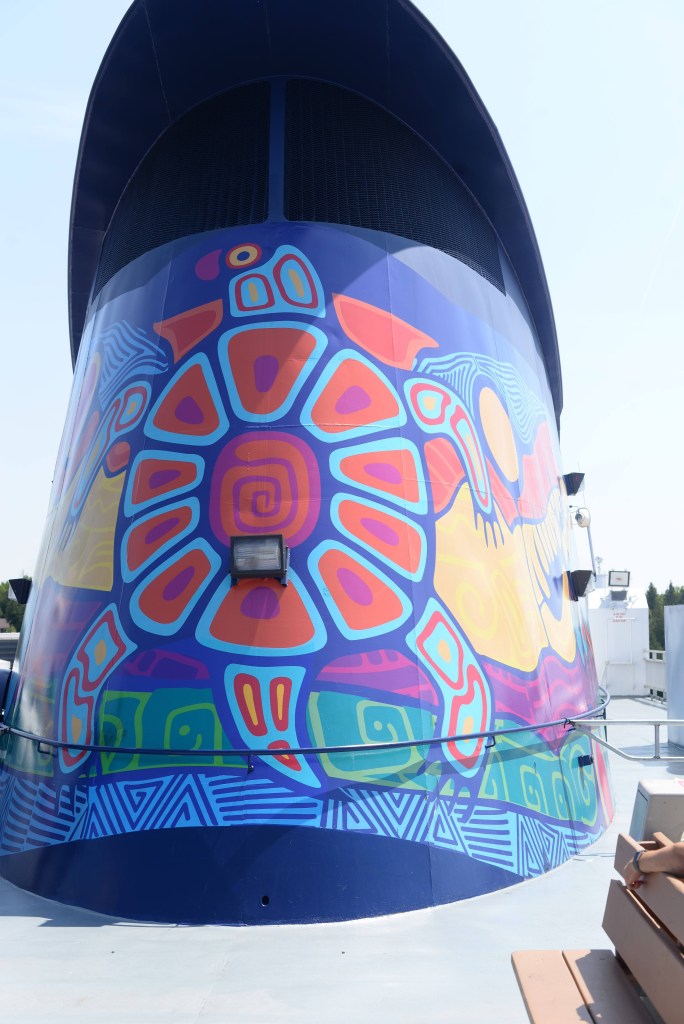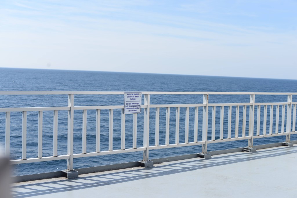 The ferry itself is pretty neat. At the bottom is the hold where all the cars are. There are even ramps for some cars to be up on a second level. As far as I can tell the cars are just left in park and are good. For my bike they had me tie it to a wall using some rope. It’s the proper kind of thick rope that you’d expect on a ship and it’s fun to practice knots tying it up. Then I go to the very top of the boat so I can get a nice view from the deck. We pull out of Tobermory fairly quickly and then make our way across the lake. It gets real windy real fast but there’s a lower deck which is also outside but protected from the wind. Without the wind and in the sun, there isn’t a cloud in the sky, it’s quite hot and I decide I’ll see if I can get some food.