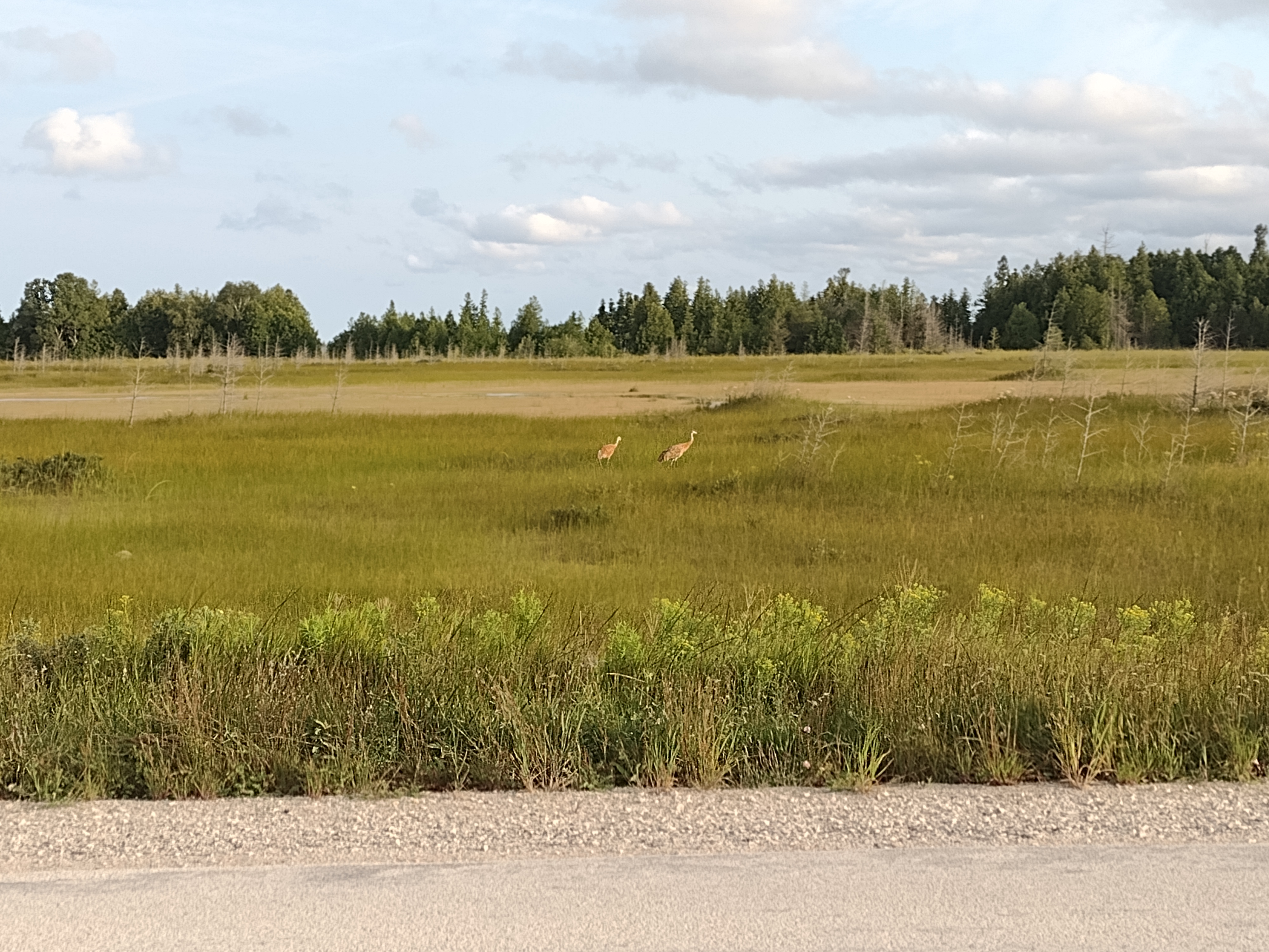 The night passed uneventfully and there was no rain in the morning so the day has already started on the right note. I use the facilities, quickly pack up and then start on my way. The first little bit of the route is on a regular road but soon I make a turn and am on a much quieter one that hugs the shore around Lake Huron. There are lots of nice views of the lake and islands that I never even knew existed. Pretty early on the road comes to a grassy, marshy area and I can see some neat looking birds in the grass. I don’t know much about birds so it’s more surprising when I can identify one. Luckily there’s someone walking their dog nearby so as I ride on my way I ask them what kind of bird it was and they tell me they’re sandhill cranes. It’s the first I’ve seen of them but won’t be the last.